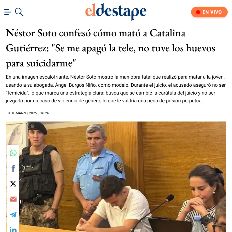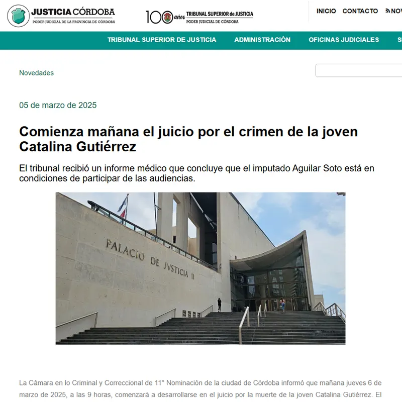 La causa Néstor Aguilar Soto se refiere al proceso judicial por el femicidio de Catalina Gutiérrez, una joven influencer y estudiante de arquitectura de 21 años, ocurrido en julio de 2024 en la ciudad de Córdoba.
