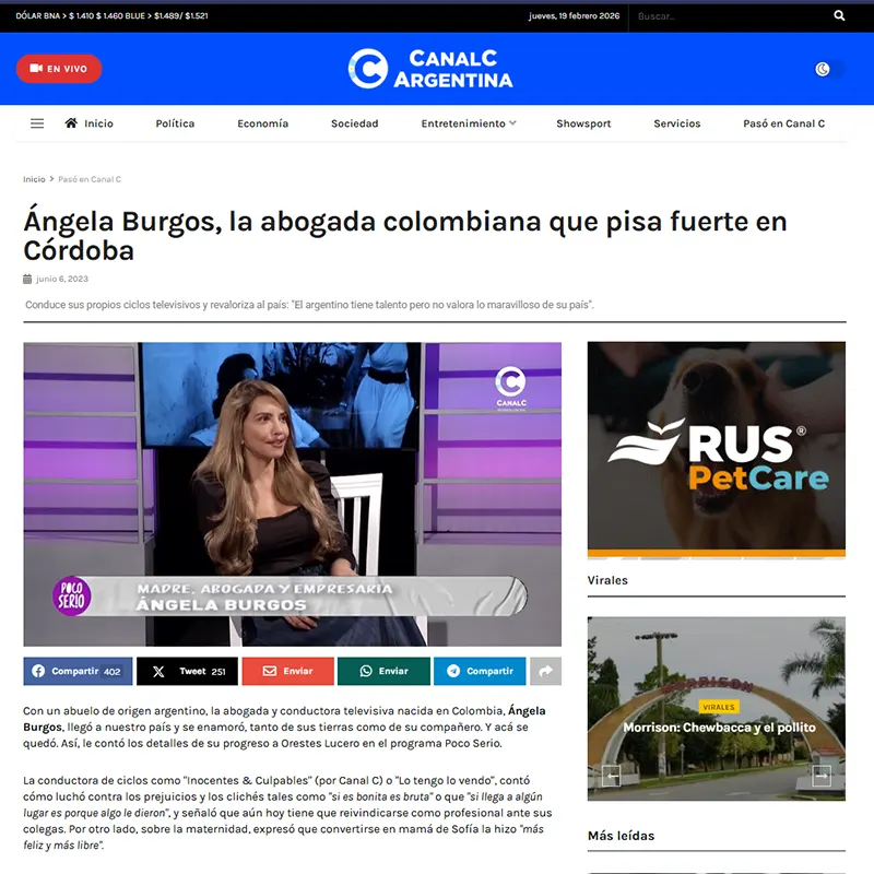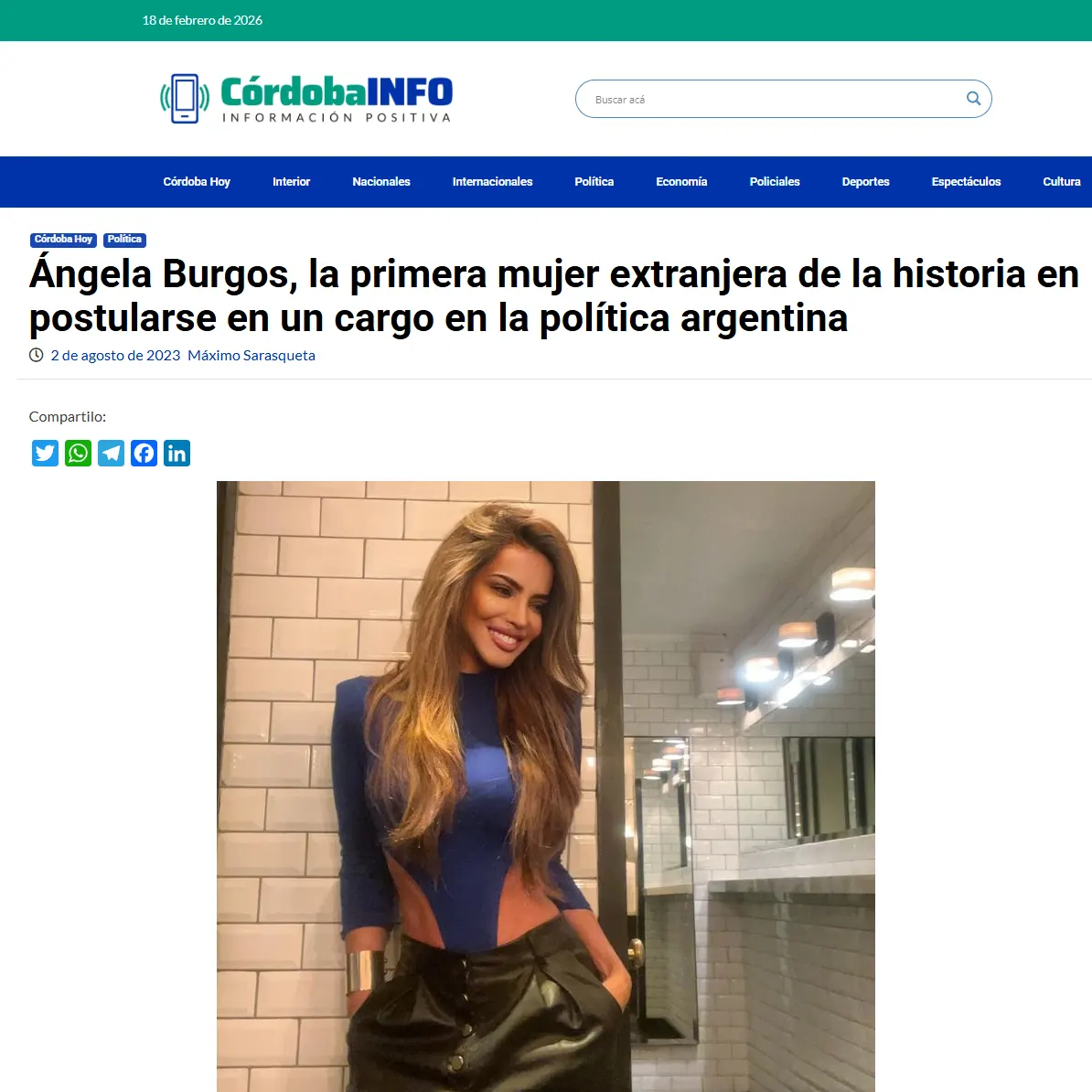 La Dra. Ángela Burgos, reconocida abogada penalista de origen Colombiano, radicada en la provincia de Córdoba, marcó un hito en la política Argentina al presentarse como precandidata a Diputada Nacional en las elecciones PASO de 2023.